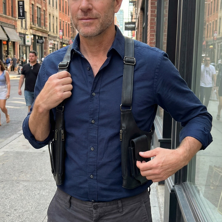 It takes the bulk out of your pockets and locks it flat against your ribs, so you can carry everything you need without looking like a tourist.